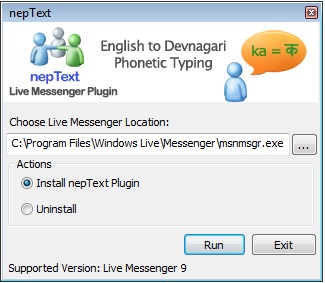 This was a personal project with an effort to add English-Nepali Transliteration module to Windows Live Messenger. The plugin can be downloaded